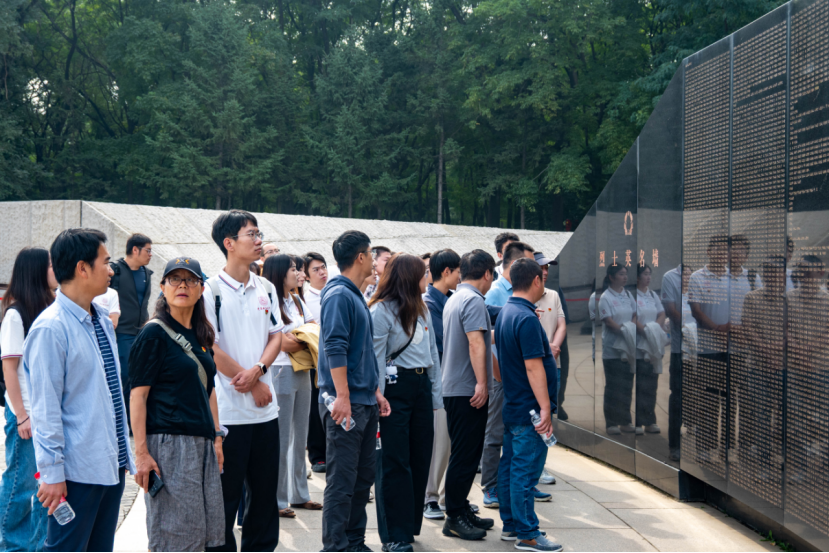 活动首站,队伍庄肃立于抗美援朝烈士陵园。松柏苍翠,丰碑矗立,无声诉说着英雄的伟绩。在反法西斯战争胜利80周年的宏阔历史坐标下,缅怀在抗击侵略、保卫和平事业中献出生命的志愿军将士,意义尤为深远。全体人员整齐列队,在纪念碑前静默肃立,举行庄严的敬献花篮仪式。每一方墓碑背后,都是一段气壮山河的英雄史诗,大家驻足凝视,表达对先烈无比的敬仰与深切的怀念。烈士英名墙上,密密麻麻镌刻着为国捐躯的英名,在阳光下熠熠生辉,令人肃然起敬。队伍参观了抗美援朝纪念馆,透过一件件珍贵文物、一幅幅历史图片和详实的文献资料,深刻感悟了志愿军将士保家卫国的坚定信念和视死如归的革命精神。